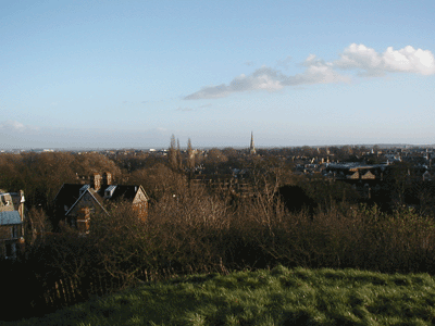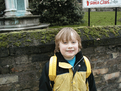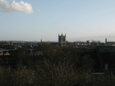 Our own backyard Local playground which is much missed. At Halloween, Patrick was Harry Potter and Grace was Hermione Granger. A favorite local shop Cambridge Mound, or why Cambridge is where it is View from the Mound, including the sea Boats on the Cam Patrick near the Cam Patrick downtown in front of St. Giles' Church